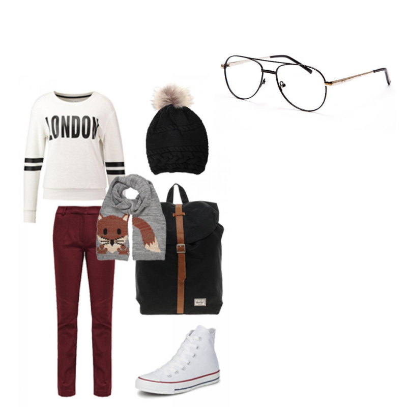 Si quieres conseguir un estilo casual y sporty, decídete por unos pantalones burdeos y una sudadera. Completa tu outfit con unas zapatillas blancas, un gorro de invierno, una bufanda y una mochila, una opción informal, pero con una gran personalidad.